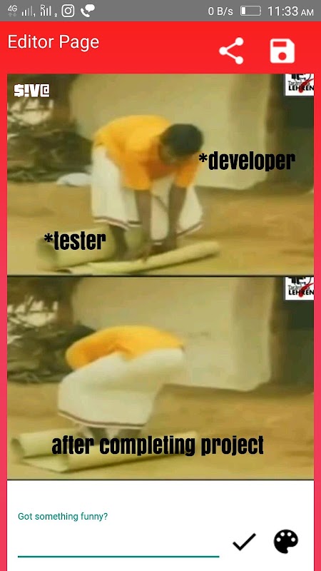 Create memes with images from your gallery and share it with your friends. Now add a unique touch to the memes you create by adding a signature. It's time to be the author of your memes. (self-five)