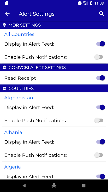 • Receive country specific alerts