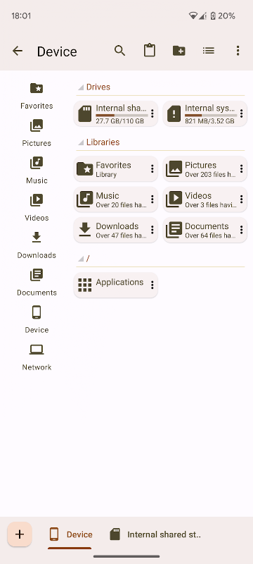 पूर्ण विशेषताओं वाले चित्र, संगीत, वीडियो, दस्तावेज़ और अन्य फ़ाइलें प्रबंधक।