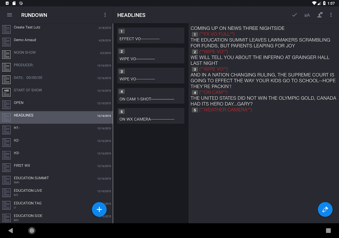 · Rundown is backed up locally, so that you can continue working if you lose connectivity