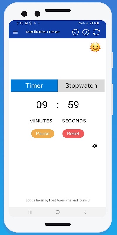 Meditation Timer is easy to use and has bubbly feeling to lift you up. Practice meditation the way you like it. The Meditation Time App is a simple and clean timer for your meditation session. It lets you set the duration of your meditation and offers a mindfulness bell that rings in an adjustable interval.