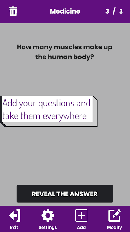 Create your review notes and receive regular reminders to easily assimilate knowledge. Start by creating a stack of questions by topic, fill in the questions you want to answer later. Then, type in the correct answer once as a text or audio note. Finally, the application will prompt you to answer the questions at regular intervals. Depending on the answer given, the next reminder will be more or less frequent.