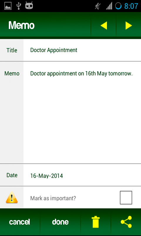 Just add a date, title and description about the todo.