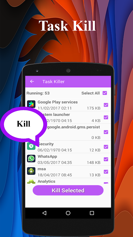 One-tap buttons killing all running background tasks.