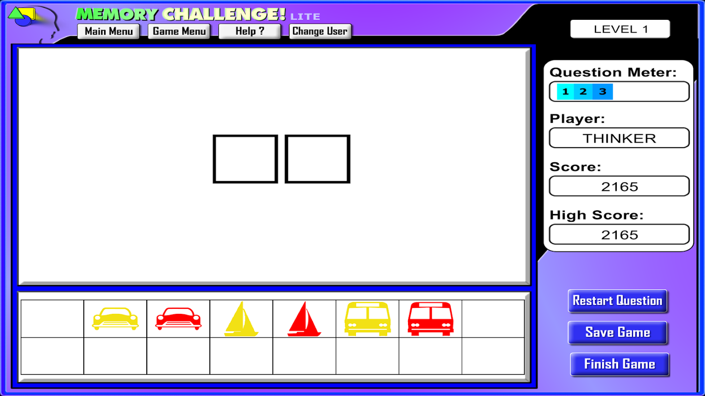 Players use practice, test, and game modes to improve visual memory skills including: