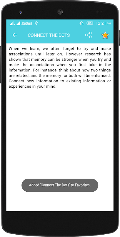 शुरू करने के लिए एक महान जगह इस app एक कोशिश मिलता है. यह तुम एक सबसे अच्छा स्मृति तकनीकों को परिचय के रूप में अच्छी तरह से अपने मस्तिष्क के स्वास्थ्य में सुधार के लिए तरीके प्रदान करता है.