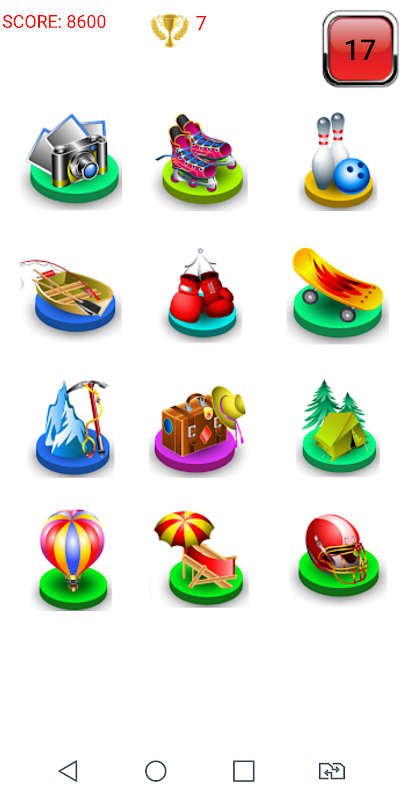 - Multilevel modes where game difficulty and number of images increases with the level and player needs to complete each level within specified time limit