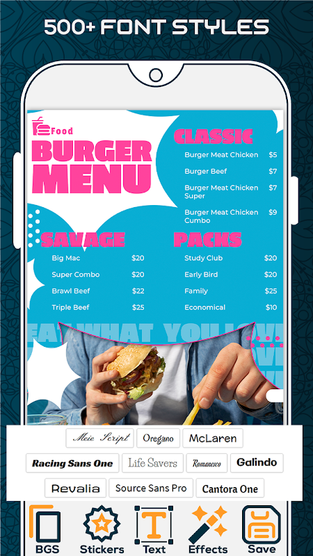 - आसानी से और जल्दी से अपने मेनू को डिज़ाइन करें और लोगो विंटेज शैली का पालन करें