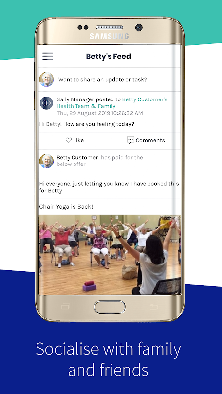 मर्सी सर्विसेज ऐप, मर्सी सर्विसेज के मौजूदा ग्राहकों और उनके परिवारों को अपने प्रियजनों और टीम के साथ सूचना और अपडेट संचार करने और साझा करने की अनुमति देता है।