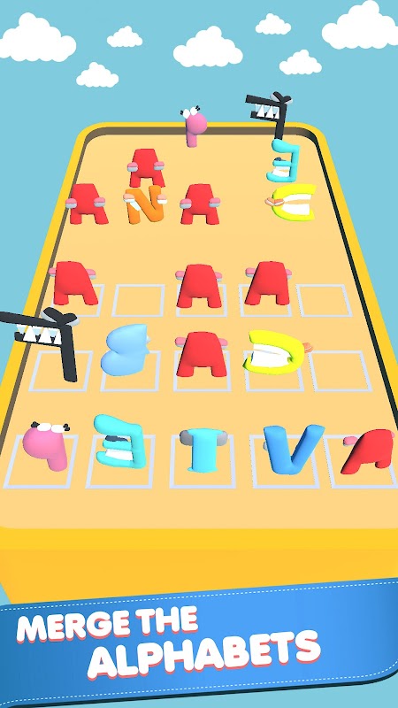 इन अल्फाबेट गेम्स और मर्ज मॉन्स्टर में मर्ज अल्फाबेट 3 डी लोर रन का आनंद लें।