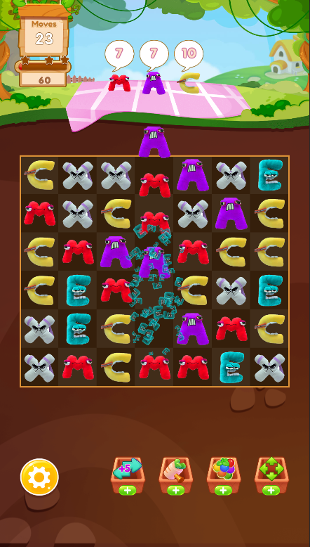 बी, सी, और इसी तरह आगे भी ऐसा ही करें, मैच 3 बनाएं! किसी पत्र का।