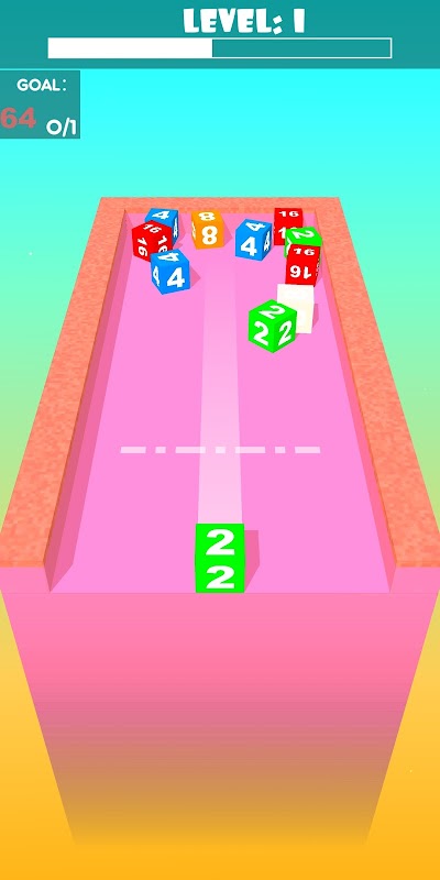एक उच्च घन बनाने और स्तर को पूरा करने के लिए दो समान क्यूब्स को मर्ज करें