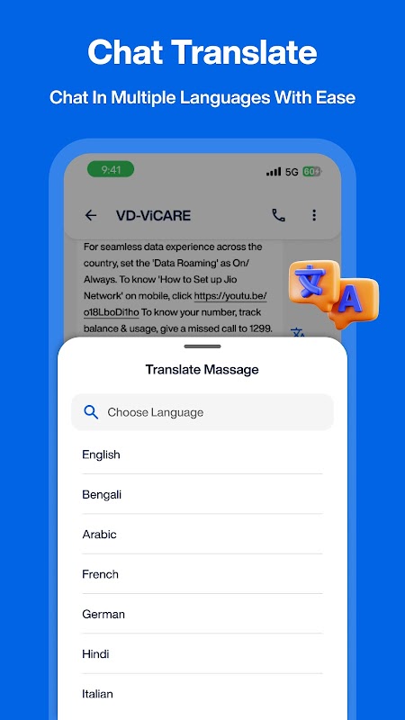 - किसी भी संदेश का किसी भी भाषा में आसानी से अनुवाद करें।
