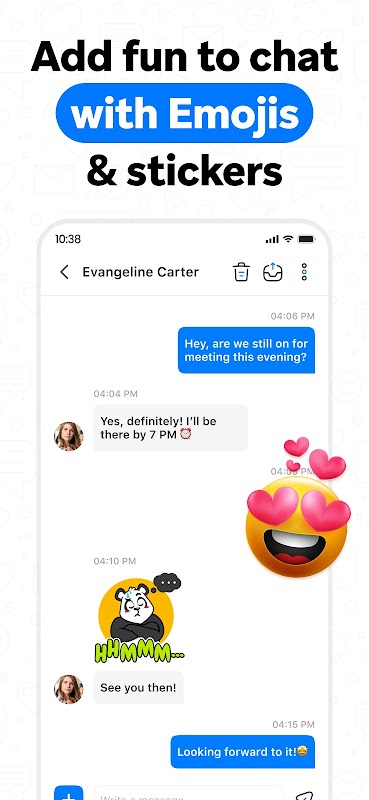 Make your messenger truly yours. Personalize your experience with a huge library of themes, fonts, and notification sounds. Express yourself better with thousands of emojis, GIFs, and stickers.