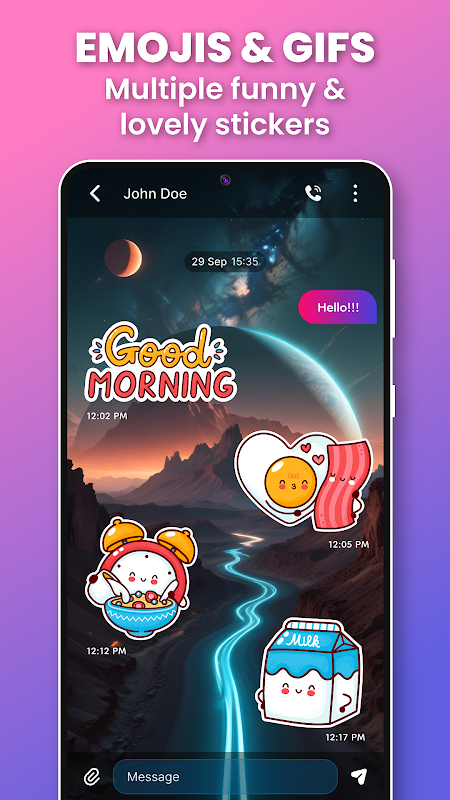 - कई GIFS और स्टिकर: उपयोगकर्ता न केवल संदेश या मल्टीमीडिया भेज सकते हैं, बल्कि बहुत सारे प्यारे इमोजी, GIFS और स्टिकर के साथ अपनी भावनाओं को भी दिखा सकते हैं।