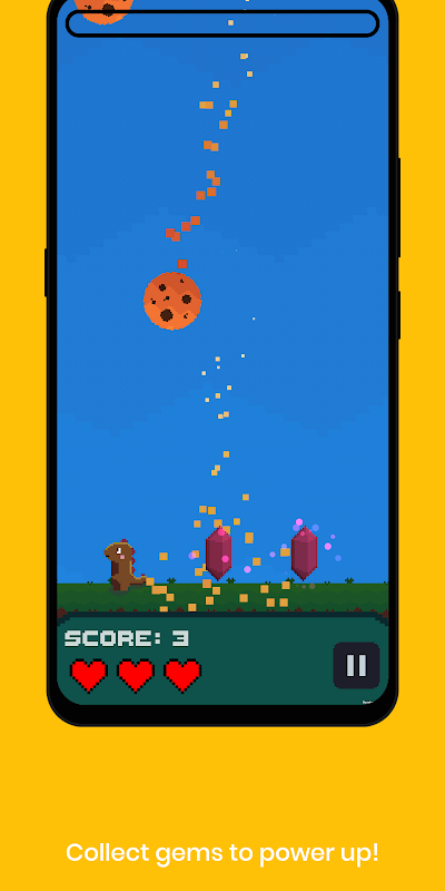 आकाश से गिरने वाले उल्काओं से बचने के दौरान उस स्थान पर जाने के लिए स्क्रीन पर क्लिक करें या खींचें। उल्का दुर्घटना से किसी भी विशेष क्रिस्टल के लिए नज़र रखें, पर्याप्त इकट्ठा करें और आप नई शक्तियों के साथ बड़े हो जाएंगे जो आपको उन अजीब उल्काओं (थोड़े समय के लिए) खाने देंगे।