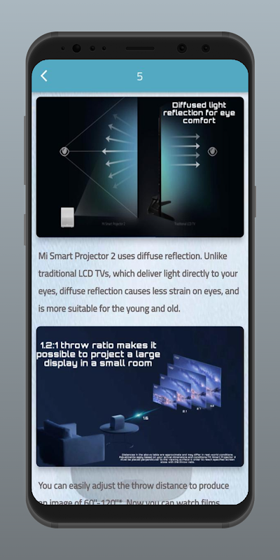 एप्लिकेशन एमआई स्मार्ट प्रोजेक्टर 2 आपको एमआई स्मार्ट प्रोजेक्टर 2 गाइड के लिए कई जानकारी प्रदान करता है