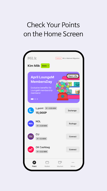 अपने संचित पॉइंट्स को मिल्क कॉइन में बदलें और उन्हें तुरंत अन्य पॉइंट्स से बदलें।