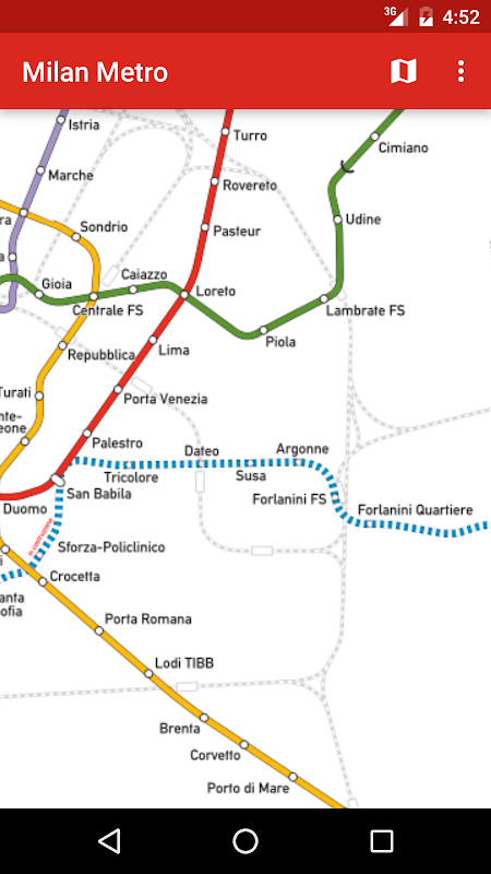 प्ले स्टोर पर मिलान मेट्रो का सबसे अच्छा नक्शा। एक होना चाहिए कि आप एक पर्यटक हैं, तो! निर्माण के अंतर्गत वर्तमान मार्गों बिंदीदार लाइनों के साथ चित्रित कर रहे हैं। यह पूरी तरह से ऑफ़लाइन काम करता है।