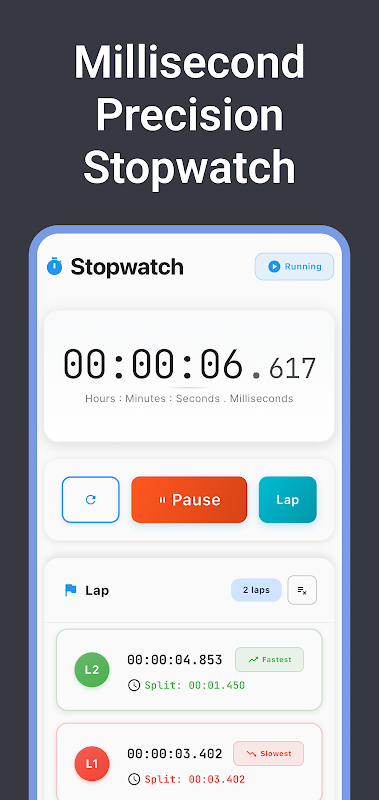 खेल, खाना पकाने आदि के लिए मिलीसेकंड सटीकता के साथ स्टॉपवॉच और टाइमर