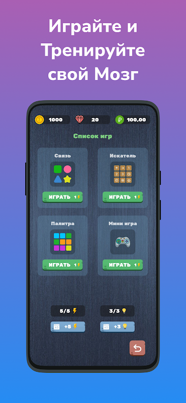 क्या आप अपनी सोच को प्रशिक्षित करना चाहते हैं और पैसे कमाना चाहते हैं? फिर "माइंड ट्रेनिंग: अर्न मनी" डाउनलोड करें - एक रोमांचक गेम जिसमें आपको दिलचस्प गेम खेलने की ज़रूरत है!