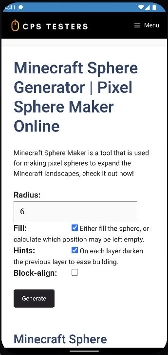 एमसीएसजी https://cpstesters.com/minecraft-sphere-generator/ द्वारा