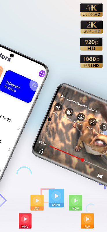 अपने डिवाइस के डिस्प्ले की पूरी क्षमता का लाभ उठाएं। हमारा प्रो इंजन 1080p, फुल HD और 4K वीडियो प्लेयर रेंडरिंग के लिए सटीक रूप से ट्यून किया गया है, जो लंबे मूवी सेशन के लिए लैग-फ्री प्लेबैक और बेहतर बैटरी दक्षता की गारंटी देता है।