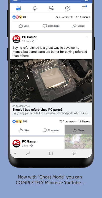 YouTube के लिए Minimizer के साथ, आप अपने फ़ोन या टैबलेट पर अपने पसंदीदा YouTube वीडियो का आनंद ले सकते हैं, जबकि अन्य कार्य करते हैं, जैसे वेब ब्राउज़ करना या अपनी Facebook सूचनाओं की जाँच करना।