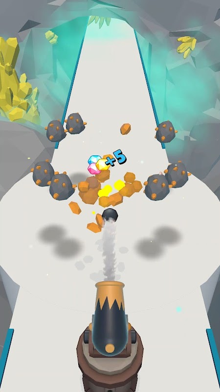 How to shoot minerals? Use your most flexible finger to aim. Stay focused and always ready, tap the screen to shoot cannon balls to the ore. Destruction of minerals will leave a lot of gems on the ground.