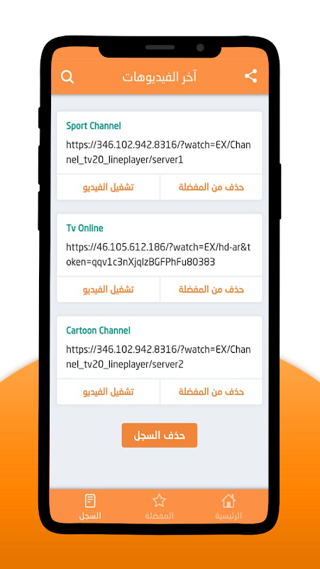 - صفحة السجل : والتي تحتوي علي سجل لآخر الفيديوعات التي تم تشغيها.