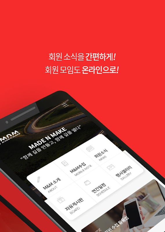 MNM 정회원의 소식과 정보를 열람할 수 있는 모바일 수첩 어플리케이션입니다.