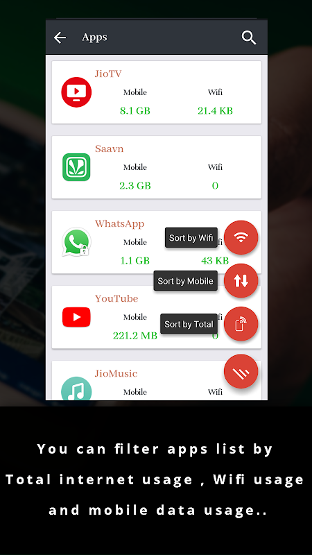 - A Ongoing Notification display with total data usage of mobile data and wifi of your current billing cycle.