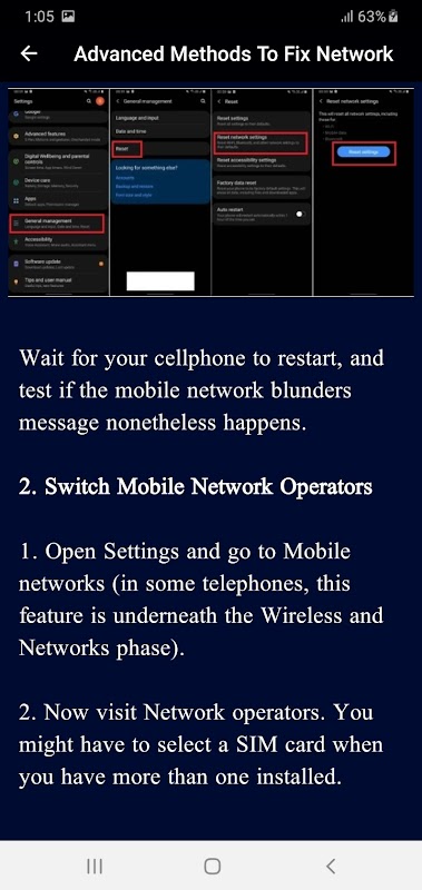यह एप्लिकेशन केवल आपको मोबाइल नेटवर्क त्रुटि ट्रिक्स का मार्गदर्शन करता है।