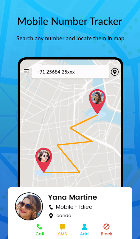 मोबाइल नंबर लाइव ट्रैकर किसी भी मोबाइल नंबर को उसके कॉलर विवरण में खोजने के लिए।