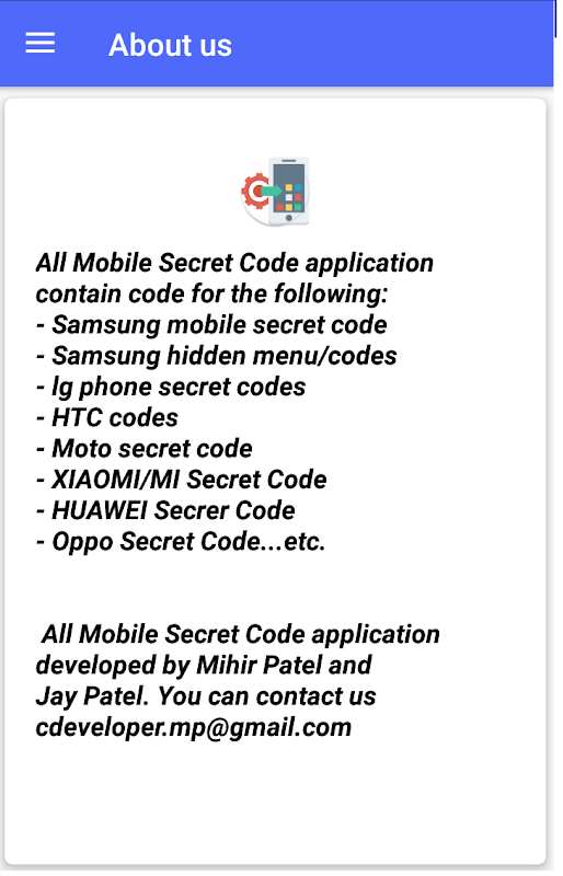All Mobile Secret Code application contain code for the following: