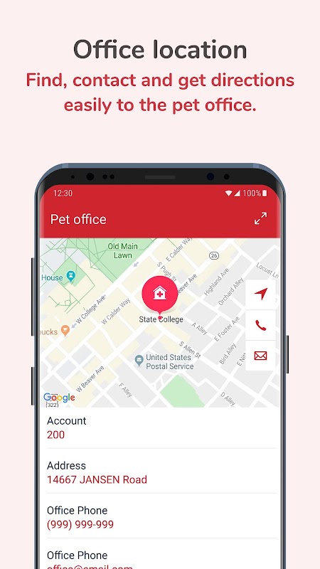 Mobile Veterinary Practice is the new connection between your pets and your favorite veterinary office. Mobile Veterinary Practice features unique technology which allows you to access your pet’s medical records, book real time appointments, request health certificates, and much more. You can even personalize Mobile Veterinary Practice with your own pet photos. You can see a map and directions to your veterinary hospital, and through the Mobile Veterinary Practice app can easily contact your veterinary office. The Mobile Veterinary Practice app is connected to your pet’s records at your veterinary office so it is always up to date.
