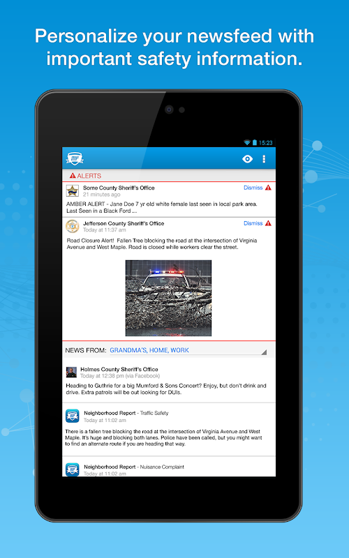 • जल्दी से सही अपने न्यूज़फ़ीड पर अपने पड़ोस से प्रासंगिक सुरक्षा समाचार और अलर्ट देखें। कोई और अधिक दैनिक सामाजिक बकवास के माध्यम से तलाशी महत्वपूर्ण जानकारी खोजने के लिए!
