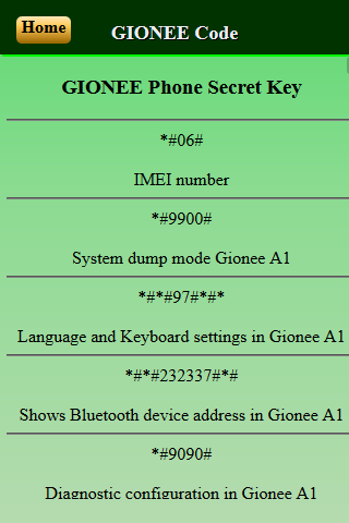 Mobiles Secret Codes of GIONEE 1.0.0