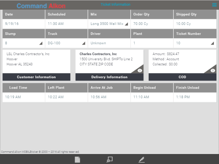 MOBILEticket एक वास्तविक समय कागज रहित टिकट समाधान है कि अपनी पीठ अंत मूलभूत प्रणाली के साथ सीधे एकीकृत करता है। कागज टिकट को खत्म करने और गति और अपने चालान प्रक्रिया की सटीकता में सुधार करते हुए कब्जा करने के लिए अपने ग्राहकों को 'हस्ताक्षर, टिप्पणियाँ, पानी की घटनाओं गयी, और अतिरिक्त उत्पाद की बिक्री, जबकि नौकरी साइट पर।