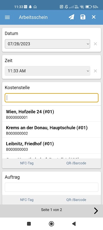 MobileTimer3, SIS समय प्रबंधन समाधान के साथ, आपको वर्तमान कार्य और ऑर्डर समय को इलेक्ट्रॉनिक रूप से रिकॉर्ड और दस्तावेज़ करने में सक्षम बनाता है (स्टैंड-अलोन ऐप नहीं)। आपने कब काम शुरू किया या अपनी व्यावसायिक यात्रा कब शुरू की या समाप्त की, इस बारे में प्रश्न गायब हो गए हैं। यदि आप क्यूआर कोड/बारकोड स्कैन का उपयोग करना चाहें तो आप क्षेत्र में ऑर्डर या लागत केंद्रों के लिए कार्य समय भी बुक कर सकते हैं।