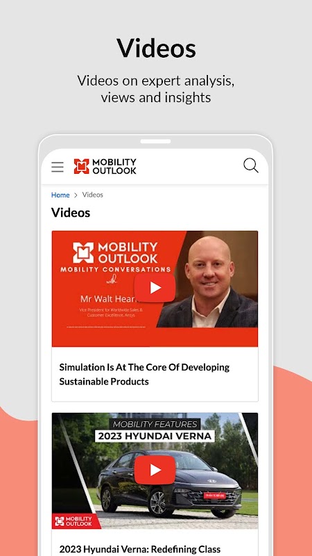 मोबिलिटी आउटलुक मोबिलिटी इंडस्ट्री को समर्पित भारत का पहला और एकमात्र मल्टी-डायमेंशनल, मल्टी-मोडल प्लेटफॉर्म है, जो मोबिलिटी परिदृश्य में समग्र दृष्टिकोण और व्यापक अंतर्दृष्टि प्रदान करता है। इसमें ऑटोमोबाइल से लेकर हवाई जहाज, जलमार्ग से लेकर समुद्री मार्ग और भविष्य की हर तरह की गतिशीलता शामिल है।