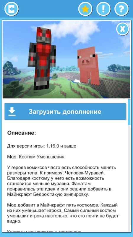 यह mods और ऐड-ऑन के लिए एक अनौपचारिक ऐप है। यह एप्लिकेशन किसी भी तरह से मूल गेम के डेवलपर्स से संबद्ध नहीं है, जिसके लिए उनका इरादा है।