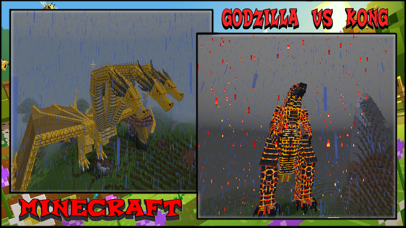 Minecraft PE के लिए गॉडज़िला बनाम कांग मॉड एक ऐसा मॉड है जो गेम में गॉडज़िला, टाइटन किंग कांग, कोंग, गिदोराह और अन्य जैसे नए राक्षस जोड़ता है।
