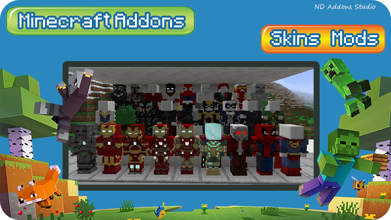 This Minecraft Spider man addon features the main superheroes from Marvel such as Tony Stark (iron man), Spiderman, Doctor Strange and other superheroes.