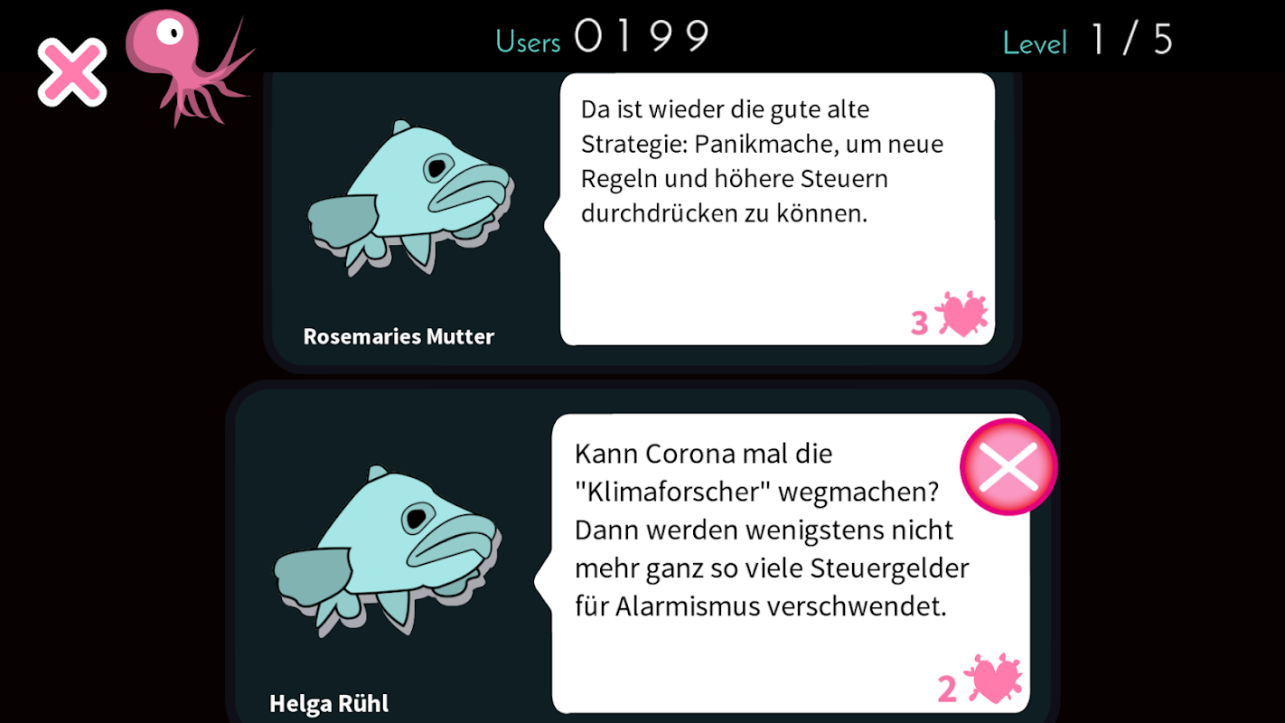 अनुचित टिप्पणियों को हटाकर काल्पनिक सोशल नेटवर्क "कडलफिश" पर मॉडरेट करें!