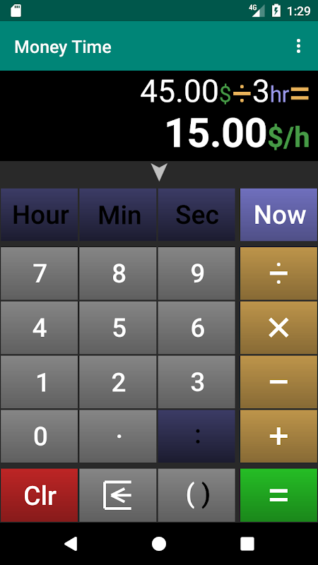 मनीटाइम आपको अपने प्रति घंटा वेतन और काम के घंटे की गणना करने देता है।