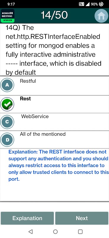 MongoDB प्रश्नोत्तरी मुफ्त एप्लिकेशन को आपके MongoDB परीक्षा के लिए तैयार मदद करता है। इस MongoDB आवेदन में हम अपने MongoDB परीक्षा पर सफलता के लिए एक से अधिक 2000 + बहुविकल्पीय प्रश्न दे रहे हैं।