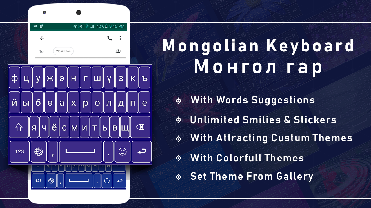 The new Mongolian English Keyboard is the new way to use your default mobile keyboard with multiple colors, beautiful backgrounds, emoji keyboard for mobile and much more. This is best keyboard theme that likely compatible with android keyboard and best app to customize keyboard with new look. Download latest colorful theme keyboard with keyboard wallpaper to give change your phone look into a new way.