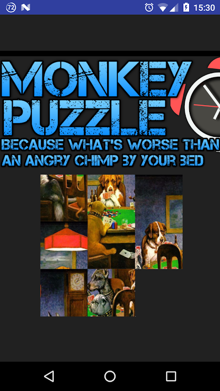 In the morning you'll wake to the disturbingly realistic sound of an adult male chimp, which you'll be unable to silence until you reform a jumbled version of the image into its original form.