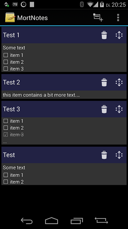 - Both note text and checkboxes possible in one note - so you can add a short general description to your check notes
